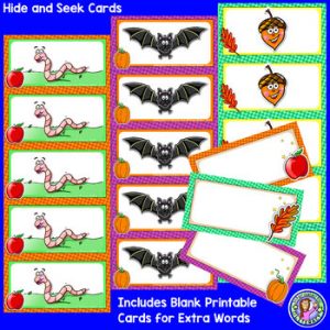 - Hide some of the special hide-and-seek cards, (worm, bat, or acorn), behind the sight words.